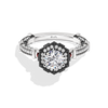 Women's Galaxy Star Engagement Ring with Garnet and Lab Grown Diamonds set in 14K White Gold and Black Rhodium